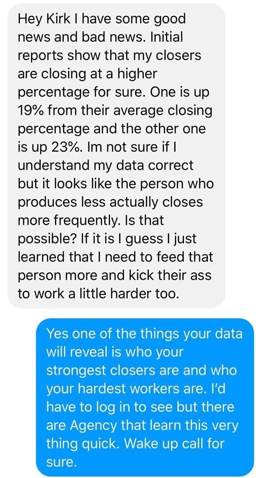 He explained to me a bit about his sales system which I was already somewhat aware of. I knew Kirk was training Agents across the country for some time with remarkable success. Agents rave about him from coast to coast and his name pops up in a number of places throughout social media when Agents request sales training or coach recommendations.